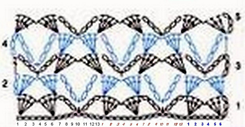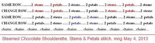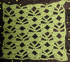 WolfCrochet used the beautiful Stem and Petal Stitch for body. An easy 2 row repeat, that makes lovely 8 petalled star flowers. See CHARTS here for the body stitch - a 13 stitch pattern repeat plus 6 (plus 3 for turning chain), and the lace border - a 10 stitch pattern repeat plus 1.