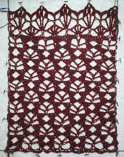 This would make a gorgeous scarf too - nice 10” wide scarf width in fingering with 2 1/2 pattern repeats, or 9” wide lace scarf with 3 1/2 pattern repeats.