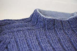 I kept all the neck stitches live, too and created corner gussets by decreasing there. I was a bit worried that the neck would start to stretch out without a neck seam, but it’s held up fine. Perhaps the bind-off on the inside of the neck hem keeps it from sagging.