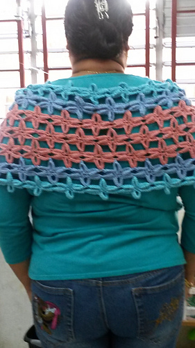 The recipient is much larger than the pattern size calls for. Have to make shawl to fit app. 58”x16” around her shoulders and chest, and length from tip of shoulder to elbow….
