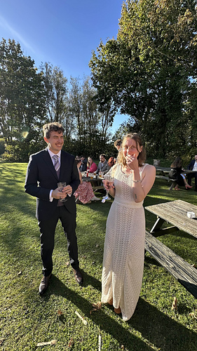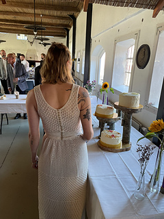 Finally complete, and wedding has passed! Ended up hooking the skirt to the top and although it did mean I had to stay aware of the edge of the skirt sometimes poking out from under the waistband, it held up really well through an evening of dancing and partying. I couldn’t be happier with this dress!