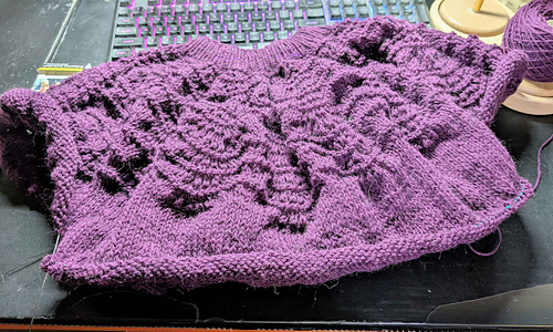 This is going distressingly fast, I’m done with lace, and only have short rows to do before separating for sleeves.