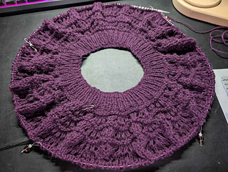 Short rows done, splitting for sleeves soon.