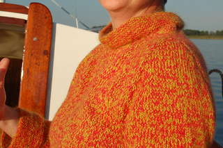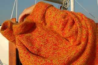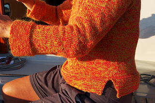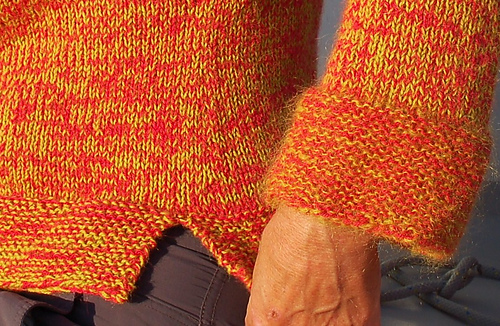 Season make-over of this fun & easy pattern: this one’s a sturdy autumn sweater. It’s soft, warm, bright and I love it. Did short rows for elbows, great for outdoorsey gals.