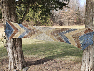 Cast on for a trip - worked the first triangle on the plane. Took a long time to do because there are several errors in the pattern, but once I figured them out, it was smooth sailing.