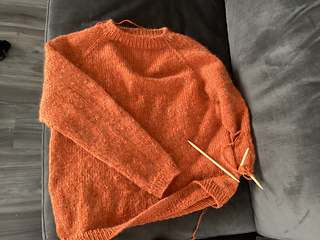 Work in stockinette stitch in the round and increase for RAGLAN on each side of the raglan stitch markers 20 times in total = 252 stitches.