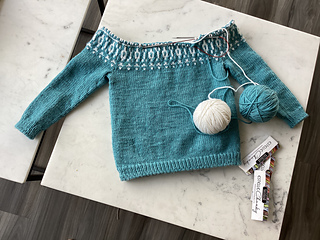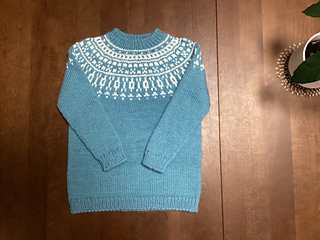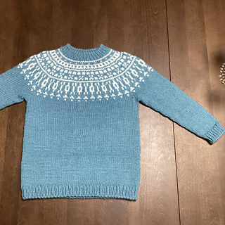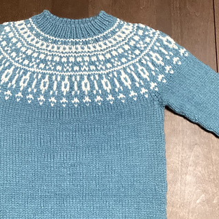 You now have 40+58+40+58 stitches (196 st) that you will put on your circular needle. Knit 1 round joining the sleeves to the body with a k2tog at each join (192st)