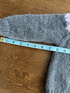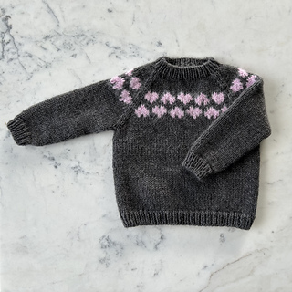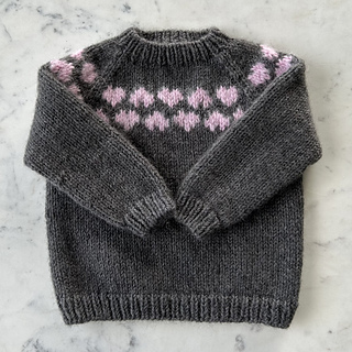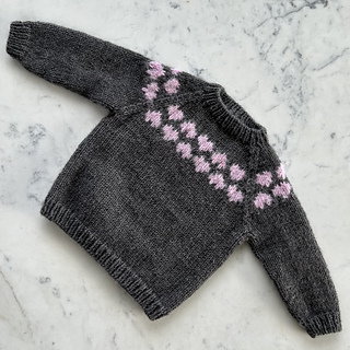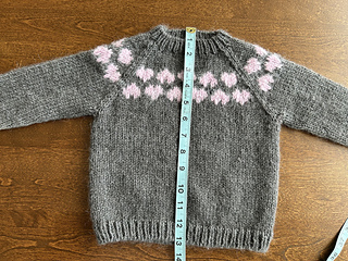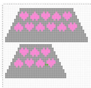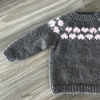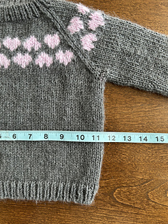 When you have decreased enough rows so that you have 42sts on the front of the body and 30 sts on the sleeves … start knitting the 5 rounds of the hearts.