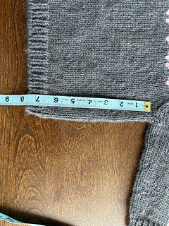 Continue knitting main colour in stocking st while finishing off the making of the 14 sets of raglan decreases