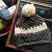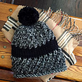 Black Stripe Darn Knit Rasta Hat with Pom