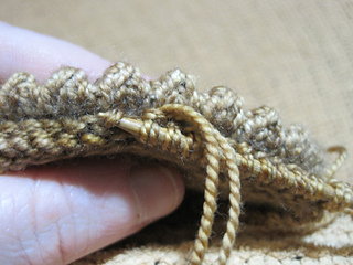 Holding beige yarn doubled.