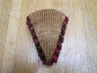 - Began w/short vert-vert stockinette seam connecting 1 short edge of filling to 1 short edge (“outer edge”) of crust from top to bottom.