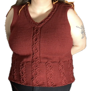 Do you recognize that cable pattern? I borrowed it from Idril (https://www.ravelry.com/patterns/library/idril-2) in the book Refined Knits. I liked the sweater, but I suck at following patterns. I changed the shoulders to straps and such. Also, there are floofy sleeves, because if I’m making my own clothes, there will be floofy sleeves.