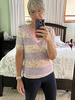 Note to self: Next time will size to a 38 and add a few more underarm stitches to give width to that area.
