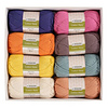 Each pack or “skein” consists of 8 balls of colour coordinated yarn. Each ball weighs 80g and contains 120m of yarn. It is sold as a boxed set.