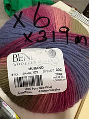 Murano is an 8 ply single twisted yarn with a slight thick/thin texture. Available in a range of gradient and bright colours, Murano is the perfect wool for both garments and accessories. This fun new range is also suitable for felting.