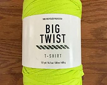 Our Big Twist T-Shirt yarn is super fun and versatile. Made of recycled polyester, this yarn is t-shirt soft and perfect for making bags and accessories, as well as throws, dec pillows, and baskets for your home. This super bulky yarn works up quickly and is the perfect choice for knitting, crocheting and macrame.