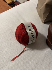 GENMOU is a 3-ply 100% merino wool yarn, with a ply of untwisted, carded wool, while the others are thin tightly-spun threads that holds the wool together. This unique construction makes the yarn airy and extremely light, while at the same time, makes the yarn wavy and resulting knit fabric very smooth. It is DK weight, warm, and great for wraps, garments and accessories.
