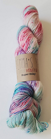 Made from 80% Superwash Merino Wool and 20% Silk, this yarn has a gorgeous drape and elegant sheen that looks and feels so soft! Seriously, you will want an extra skein just to pet and cuddle! One 2-ply skein is 100g and 400 yards making it the perfect yarn for a fine-gauge wrap or shawl! Each skein is hand dyed with love and care by Emma.