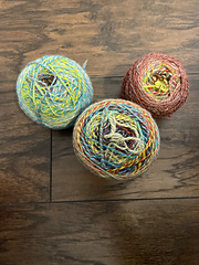 Entropy is an artisan yarn line dyed and spun at Feederbrook Farm located in Maryland. This yarn is designed to mimic Handspun yarn as the colors slowly transition as you knit or Crochet. This yarn is a nice 2 ply DK weight yarn with aprox. 13 wpi and is 100% BFL (Bluefaced Leicester wool) It does not pill due to its long staple length. Has a nice loft and a good hand. One skein is approximately 260 yards. The yarn line is named for the randomness of the colors when Singles are plied together. The colors gradate and change as you knit along. Skeins are similar but not completely identical.