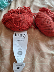 Fonty a récemment changé son alpaga qui est désormais légèrement plus épais, sans poil et beaucoup plus doux. Les nouvelles pelotes sont reconnaissables à l’étiquettes écrit en noir sur fond blanc et à la longueur (130m et plus 140m).