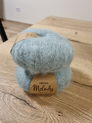 Being so light and soft, DROPS Melody is a great choice for oversize garments as well as accessories. It knits up quickly with big needles without the piece becoming heavy and it can be used as an effect yarn together with other qualities, to give garments extra volume and softness.
