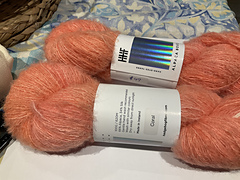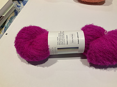 Similar to our Kidsilk Lace base, this yarn is fluffy and has a brushed look when knitted, however this one does not shed! The tiny loops hold fast the fibres and keep them attached.