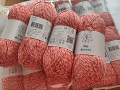 Fio consists of five threads twisted together, each in a different color. This creates a dynamic and fun effect: seamlessly blending soft pastels with bold, sun-kissed hues. The palette is inspired by summer itself, bringing energy and warmth to your handmade projects. From breezy tops to playful accessories or even kitchen towels, Fio is your go-to choice for lightweight, machine-washable pieces that stay fresh during all seasons.