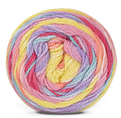 With Frutta, you will be able to enjoy the beautiful color changes of a cotton cake without compromising on a generous thickness. In fact, you will need a pair of 4 mm (US 6) knitting needles or a 5 mm (US H-8) crochet hook to start enjoying the beautiful crafting experience of this yarn. Moreover, the high meterage of the yarn and the longer color transition will allow this yarn to perform at its best in larger projects and eye-catching designs.