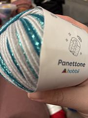 Panettone is made out of 87% cotton, 7% polyamide, and 6% glittery metallic fibers. We recommend knitting this beauty of a yarn with 4.5 mm (US 7) knitting needles, but feel free to double it up to achieve a chunkier and even more colorful effect.