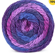 The yarn is distinguished by its long gradients with beautifully balanced colors. The colors are complimented by a glitter thread in a matching color. This creates a more subdued glitter effect, making the yarn even more elegant.