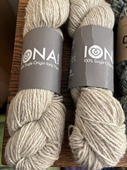 Single origin Iona yarn, available from the Iona Craft Shop. Also available in 50 g balls and 500 g cones.