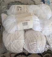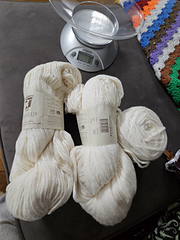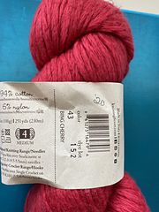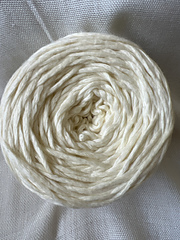 94% Israeli Mako Cotton, 6% Nylon (polyamide) with approx 248 yards per 100g that knits to 4.75 sts per inch on a US 8 needle and 11-14 sts per 4” single crochet on 5.5-6.5mm hooks.