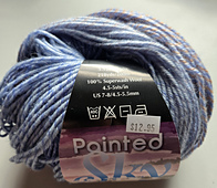 100% Superwash Wool with approx 109 yards per 50g that knits to 4.5-5.5 sts per inch on a US 7-8 needle.
