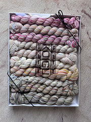Koigu’s Pencil Box is a set of 25g ‘demi’ hanks in 10 different (usually variegated) colourways.