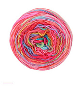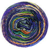Merino Extrafine fiber is opened up and spun into a thick open continuous fiber. The yarn is then dyed and when dried, it is run through rollers and pulled to add a soft twist, gel the fiber together and elongate the dye stamp. This version of Colorissimo has the same base yarn and gauge but has a shorter dye stamp so yarn patterns differently.