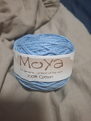 100% cotton, not labelled as organic. Color card is representative of colors that were available, but it is for the organic version of this yarn.