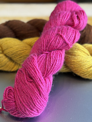 We only dye on the natural basis, no bleaching or decoloring. Each color will vary from season to season depending on the shade of the natural fibers, making it at times darker and at times lighter. This is the beauty of working with natural fibers and therefore the shade of the sample you see photographed here, might not always correspond to the shade we have in stock or at your local LYS.