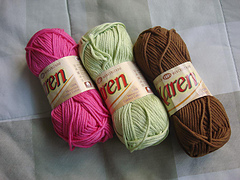 Karen is 100% cotton. It is a bulky thread with a shine, great for very heavy weaves such as rugs and bags. Each skein is 3.52 oz. 87 yards, and comes in 27 colors. Recommended hook size J/10, size 8 needles.