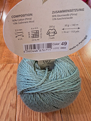 Sole is a wonderful blend of fine Pima cotton and fine cashmere, making it an unusual combination of plant and animal fibres not normally found in cotton yarn. The 90 percent Peruvian Pima cotton mixed with 10 percent Mongolian cashmere make Sole beautifully soft. It is a 6 ply yarn with a triple twist, which makes it strong and yet delicate and shiny.
