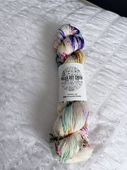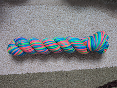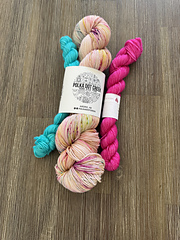 Also sold in 20 gram mini skeins & sock sets with a 100g skein main colour & two 20 g skeins in contrasting colours for heels, toes, and cuffs.