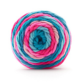 Sweet Roll® Bold is a bulky weight, 100% acrylic yarn in a curated collection of bold, self-striping colors. This yarn creates wide stripes in a regular repeat, creating all the excitement of working with multiple colors, without the chore of weaving in ends. This #6 Super Bulky weight yarn is machine washable and dryable and works up in a gauge of 10 stitches and 14 rows over 4 inches in knit and 7.5 stitches and 9 rows in crochet.