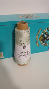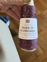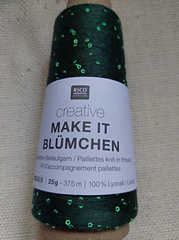 Creative Make It Blümchen is a glittering bobbin thread decorated with delicate sequins in the shape of flowers. The small flowers are harmoniously incorporated into the 100% Lyocell carrier yarn and perfectly matched in color. The yarn is simply carried along during processing, giving the knitted piece an unusual and eye-catching look.