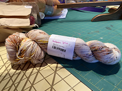 Ryan Yarn’s Twist Sock base has 400 yards to each 100 gram skein. It’s a 2-ply 80% superwash merino wool/20% nylon yarn.