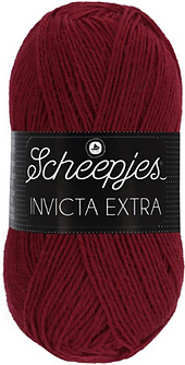 Scheepjes Invicta Extra is the solid coloured yarn, comparable with Scheepjes Invicta Colour. Invicta Extra is a superwash wool/acrylic blend, 50g/210m.