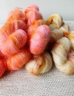 Our Mohair Silk Lace is a super soft blend of fine kid mohair and mulberry silk. It’s fluffy and fabulous and perfect for shawls and sweaters either knit by itself or together with another yarn. There’s no scratchy feeling to this yarn, which makes it fabulous to wear next to the skin!