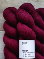 HAVEN is a light, airy yarn crafted from premium Falkland Merino blended with Bluefaced Leicester and Masham wool. The merino brings a soft, velvety texture, while Bluefaced Leicester and Masham fibers boost strength and add a lovely lustre. As with our Sunday Morning lines, the natural greige tone of the Masham fibers in Haven creates a heathered effect which brings depth and character to each of our colourways.