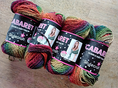Cabaret DK - a brand new yarn from Stylecraft. Featuring a seasonal shade range, including warm autumnal and soft deep pastel colours. Available in 100g balls and with a stunning range of complimenting patterns, this is the next big thing in self striping yarn.