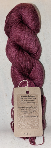 This yarn really is heavenly. Supremely soft, it has a slight shine, a fuzzy halo and takes dye beautifully. It has lovely drape, making it perfect for heirloom lace shawls.
